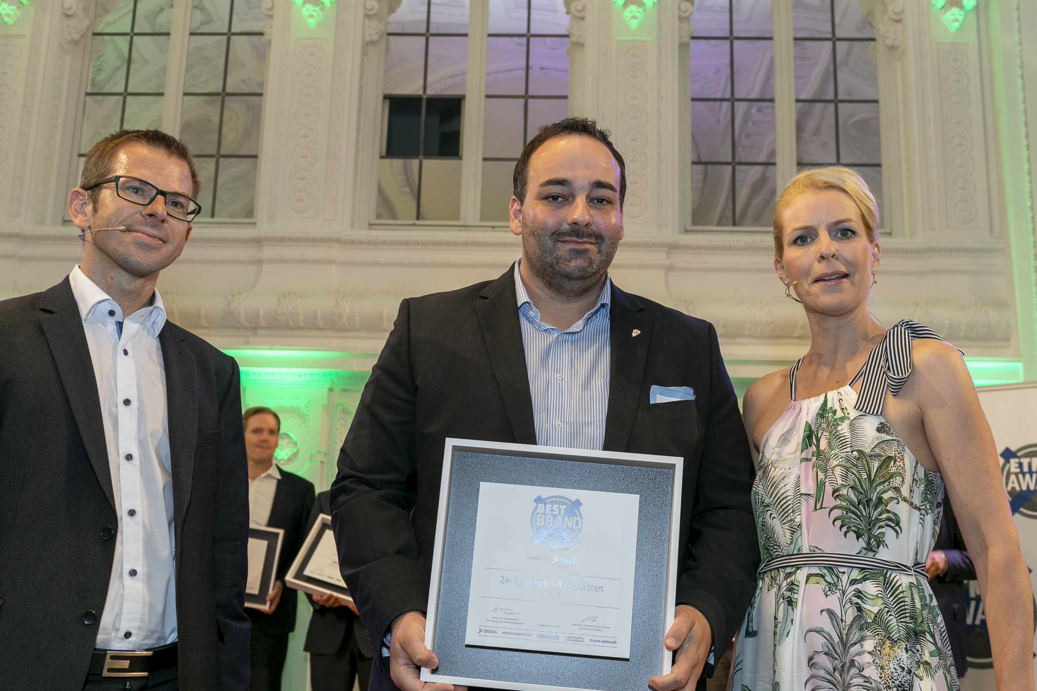 Regensburg (ots) – Seit 2006 wird jährlich von dem ETM-Verlag und der DEKRA eine Leserwahl mehrerer Fachzeitschriften aus dem Verkehr durchgeführt, bei der auch Autobahn-Rastanlagen prämiert werden. Und zum 12. Mal in Folge ist der Sieger das aus Regensburg stammende Unternehmen „24-Autohöfe“. Bei der großen Prämierungsfeier im neuen Stuttgarter Schloss erhielt Daniel Ruscheinsky, der Geschäftsführer der Kette, aus den Händen der TV-Moderatorin Alexandra von Lingen neben so wohlklingenden Siegern in anderen Kategorien, wie Mercedes Benz, VW, Volvo oder Scania die Auszeichnung. Über 42 % aller Stimmen der fast 13.000 Teilnehmer landeten alleine bei den 24-Autohöfen.