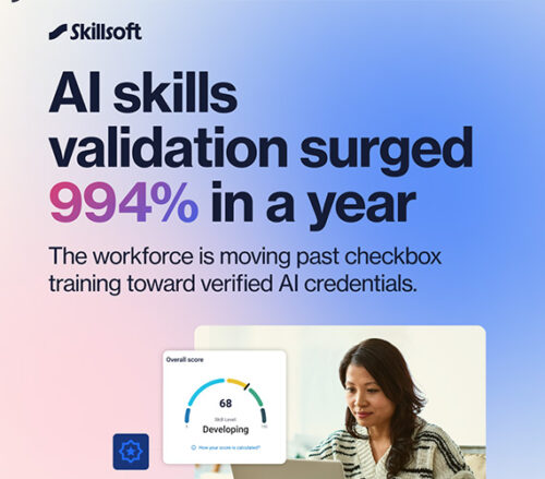 Neue Daten von Skillsoft, einer führenden KI-nativen Plattform für Skills Management, zeigen: Lernende wollen ihre KI-Kompetenzen zunehmend unter Beweis stellen. Gleichzeitig arbeiten Unternehmen daran, ihre KI-Investitionen in Produktivitätssteigerungen und Geschäftsergebnisse zu übersetzen.
