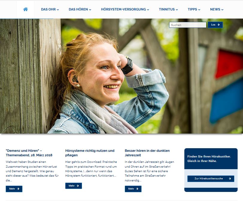 Themengebiete wie Tinnitus oder Pädakustik – Hörsystemversorgung für Kinder – finden sich genauso wie Informationen zu Gehörschutz in Beruf und Freizeit. Neben diesen Spezial-Informationen bietet die Webseite interaktive Hörbeispiele: Sie machen für jeden erfahrbar, wie die Welt für Schwerhörige klingt, je nachdem, ob jemand 20, 30 oder 60 Dezibel schlechter hört. Außerdem simulieren sie, wie ein Tinnitus klingen kann – als Tinnitus-Rauschen oder -Pfeifen.
